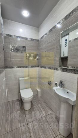 Сан узел раздельный, облицован стильной кафельной плиткой нейтральной расцветки. Установлена душевая кабина, имеется бойлер.