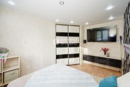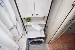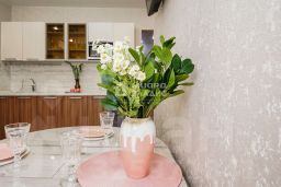 - Современность: в подарок новому собственнику остаётся современная индукционная плита с вытяжкой, а в кухонный гарнитур встроена посудомойка.