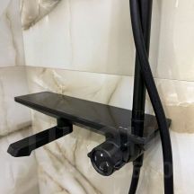 - Санузел раздельный, отделан керамогранитом, установлена душевая кабина с тропическим душем.