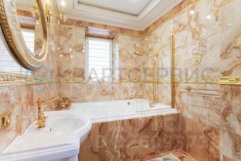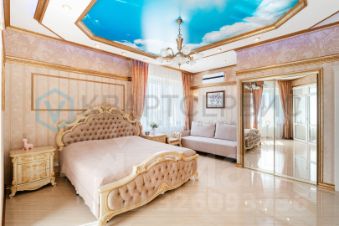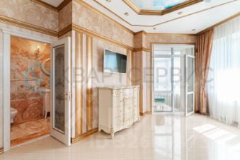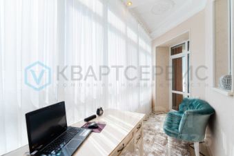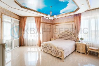 - Мастер-спальня 29 кв. м. — с личным санузлом, ванной, гардеробной и выходом на утеплённую лоджию (7,3 кв. м.), где оборудован рабочий кабинет.