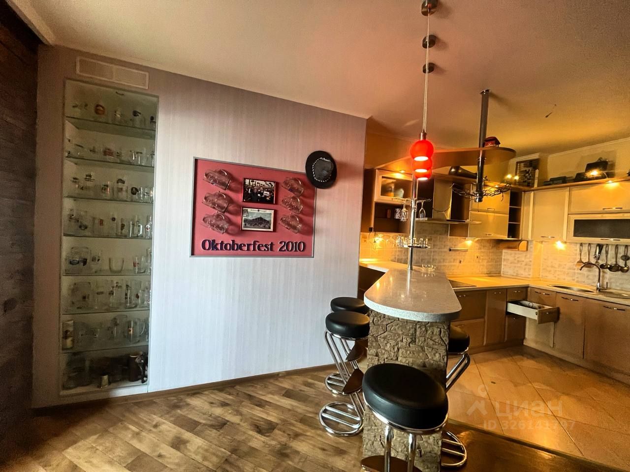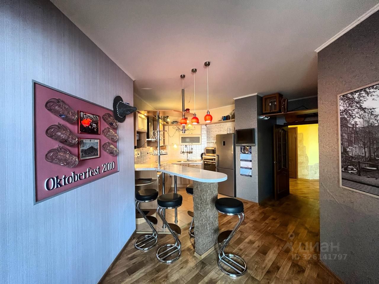 В квартире установлены современные шкафы и мебель на кухне, которая оснащена всей необходимой техникой, включая холодильник и посудомоечную машину.