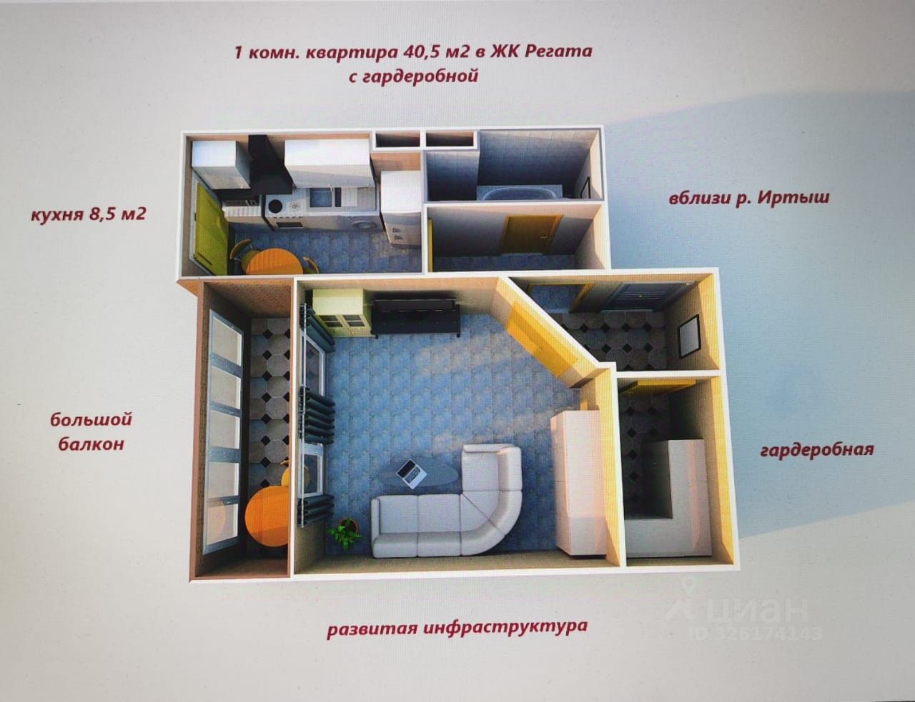 УЛУЧШЕННAЯ ПЛAНИРОВКA с КУХНЕЙ 8,5 м2