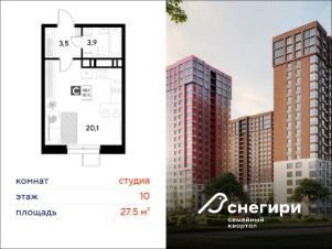 ЖК "Снегири", г. Омск, корпус 1 Срок сдачи: (4 кв. 2027, общей площадью 27.5 кв.м., на 10 этаже.)