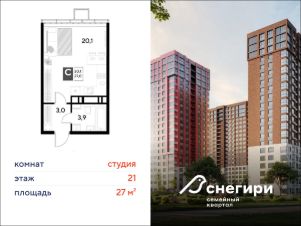 ЖК "Снегири", г. Омск, корпус 1 Срок сдачи: (4 кв. 2027, общей площадью 27 кв.м., на 21 этаже.)