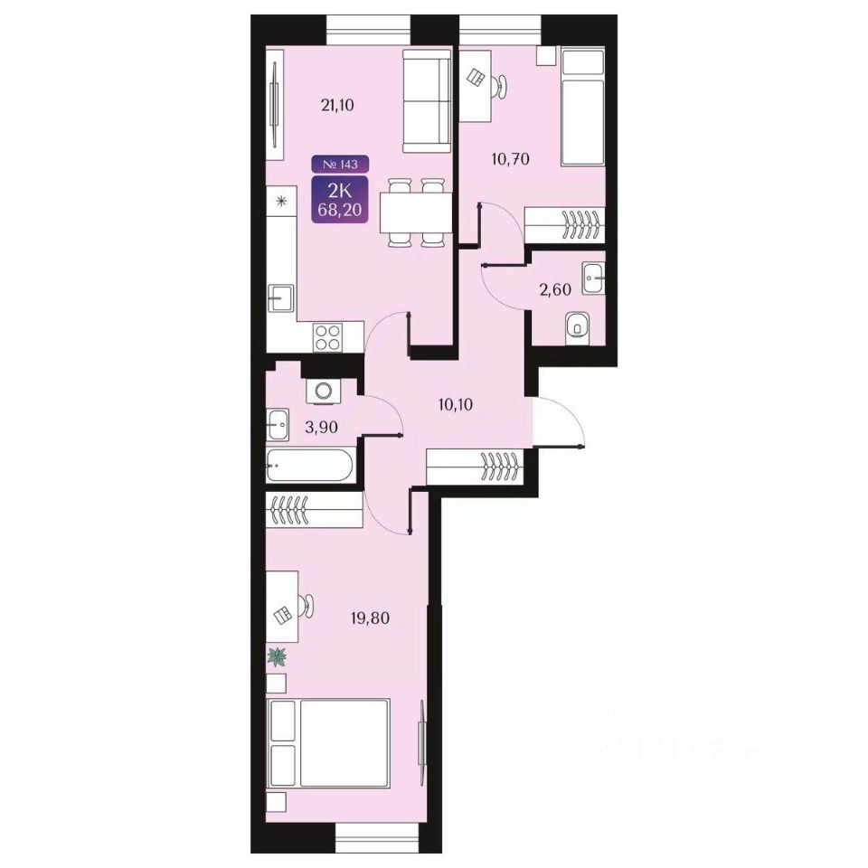 Общая площадь68,2 м²