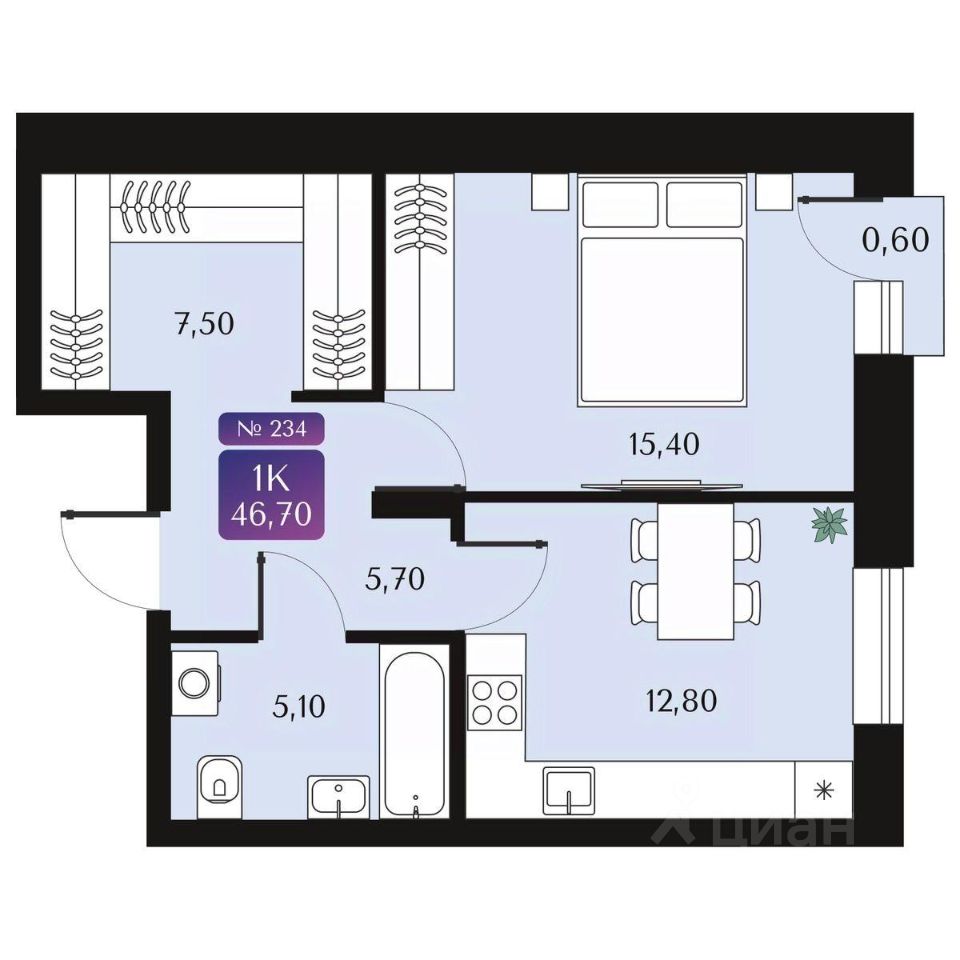 Общая площадь46,7 м²
