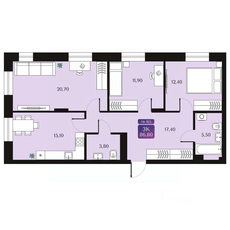 Общая площадь86,8 м²