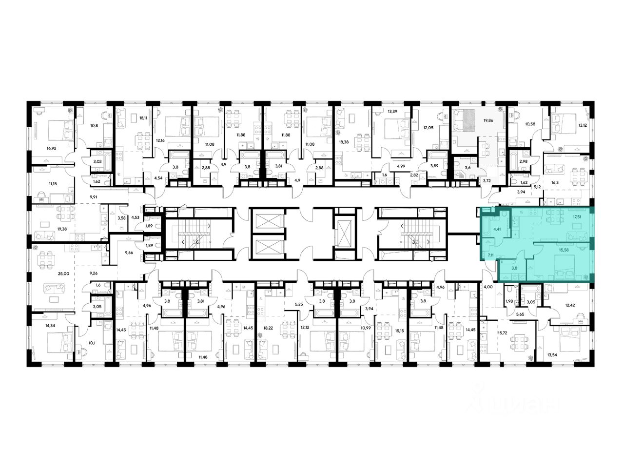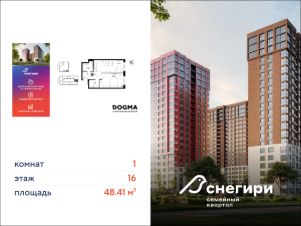 ЖК "Снегири", г. Омск, корпус МЖД 3 Срок сдачи: (4 кв. 2027, общей площадью 48.41 кв.м., на 16 этаже.)