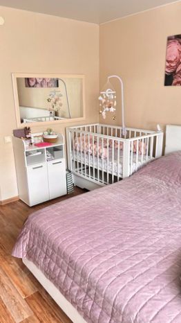 В квартире есть кухонный гарнитур и встроенная бытовая техника — можно заезжать и жить без дополнительных вложений.