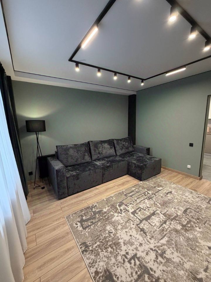 -В комнате большой телевизор, вместительный диван, с отсеками для белья, который раскладывается в огромное спальное место, балкон, отделанный качественной плиткой, балкон на кухне застеклён и полностью отреставрирован, вид из окна на цент города! Вся техника абсолютно новая, на всё есть гарантия! Все , что вы видите на фото остаётся в квартире!