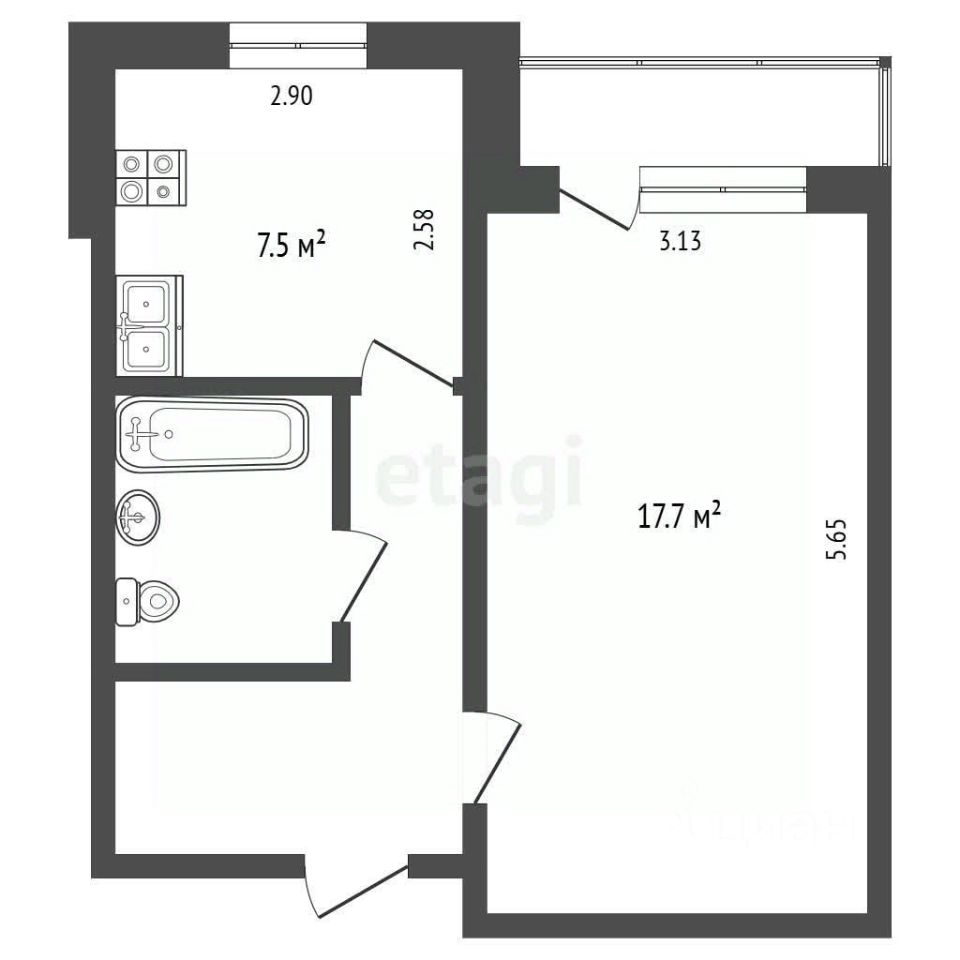 Кухня 7,5 м — отдельная.