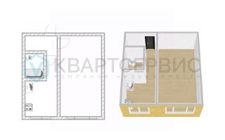 Квартира состоит из гостиной, кухни и совмещенного санузла.