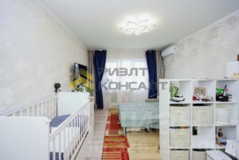Во всей квартире на полу ламинат, в ванной комнате на полу керамогранит. В комнате выполнен ремонт в 2025 году, заменена проводка и розетки с выключателями, совмещенный сан узел. Большая остекленная лоджия.