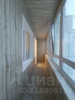 Большая остекленная лоджия на две комнаты отделана ПВХ, имеет выход с кухни.
