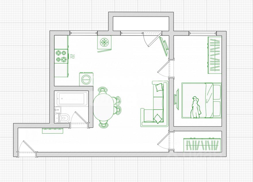 Планировка квартиры продуманная и функциональная: просторная кухня-гостиная — идеально подходит для семейных встреч, изолированная спальня с возможностью организовать вместительную гардеробную. Балкон станет уютной зоной для отдыха и релаксации — идеальное место для приятных вечеров, где можно расслабиться и насладиться ароматом вкусного кофе.