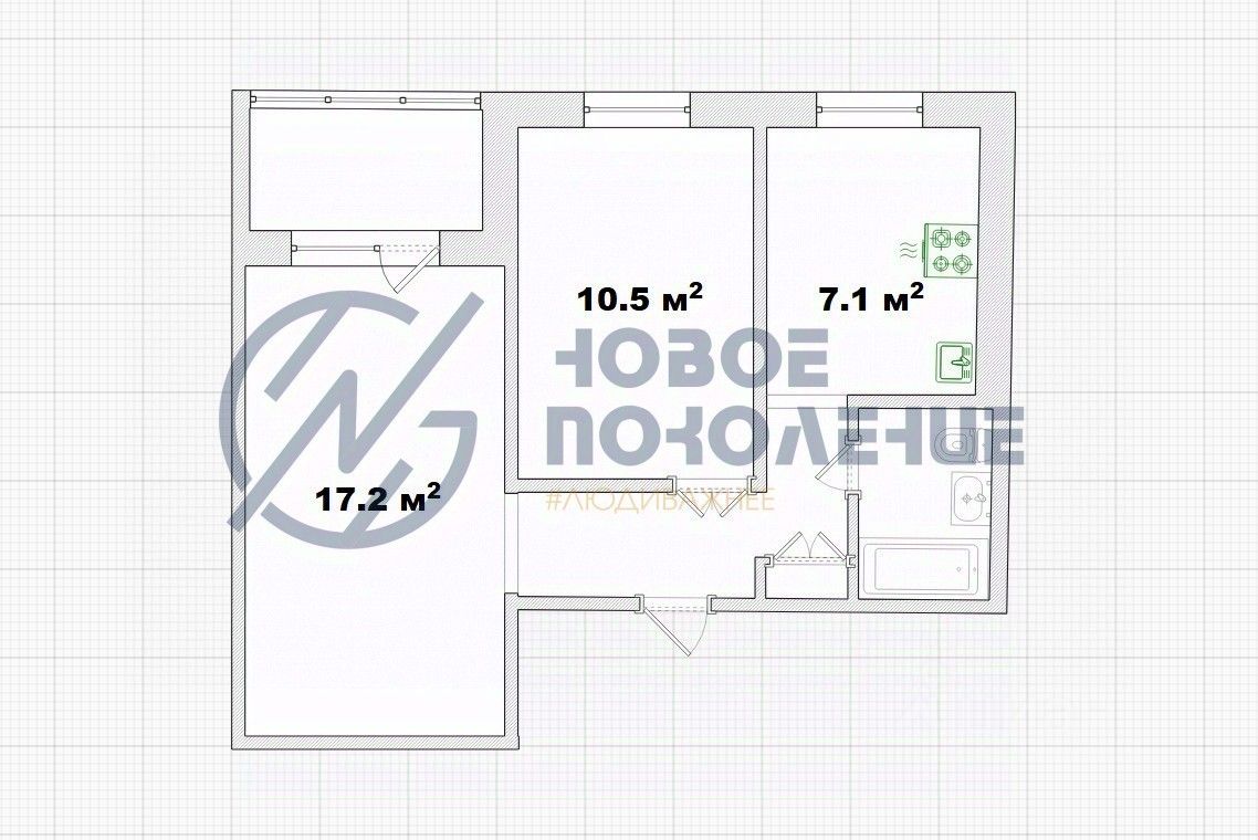 Компания недвижимости "Новое поколение" предлагает к продаже 2к квартиру с изолированными комнатами.