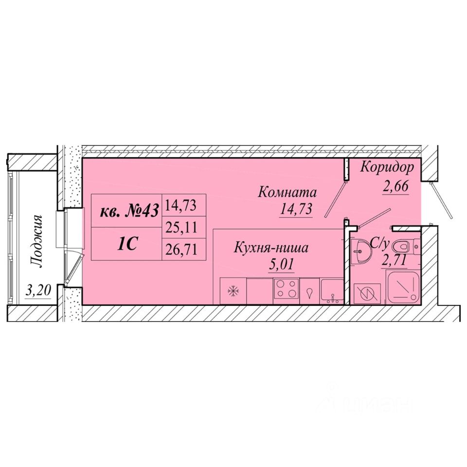 26,71 м²