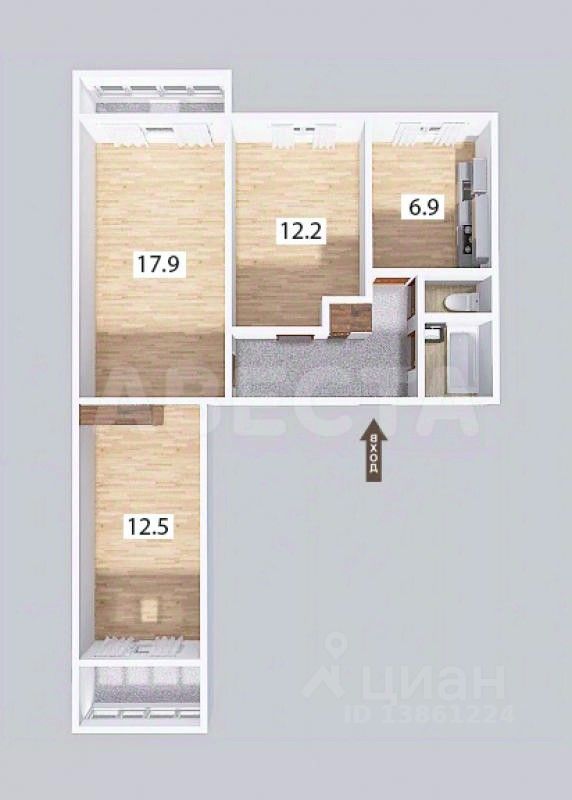 59,5 м²