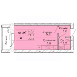 Продаётся студия в строящемся доме (Дом 1), срок сдачи: III-кв. 2027, общей площадью 26.4 кв.м., на 1 этаже. Новые жилые дома от Специализированного застройщика "Вита" расположены в г. Омск на ул. Семиреченская.