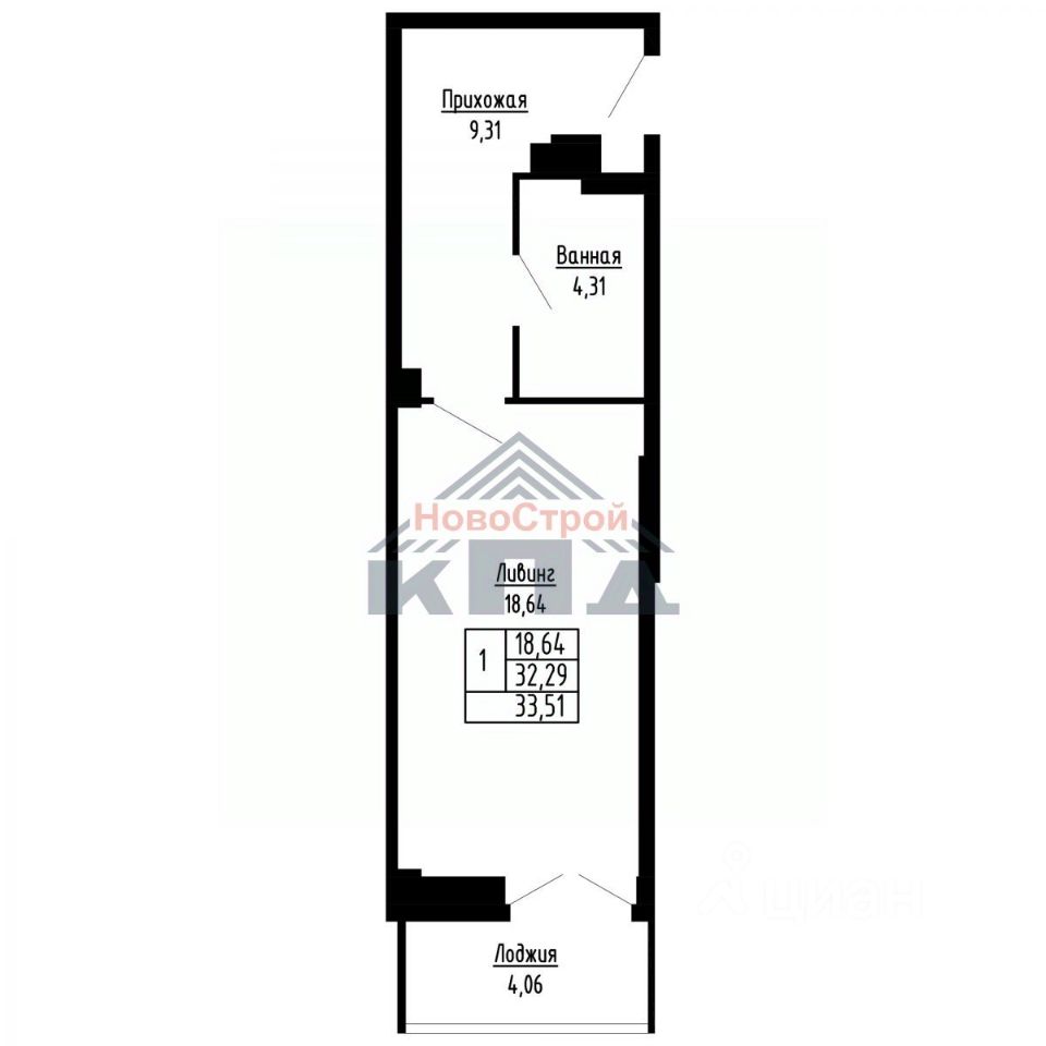 Общая площадь34 м²