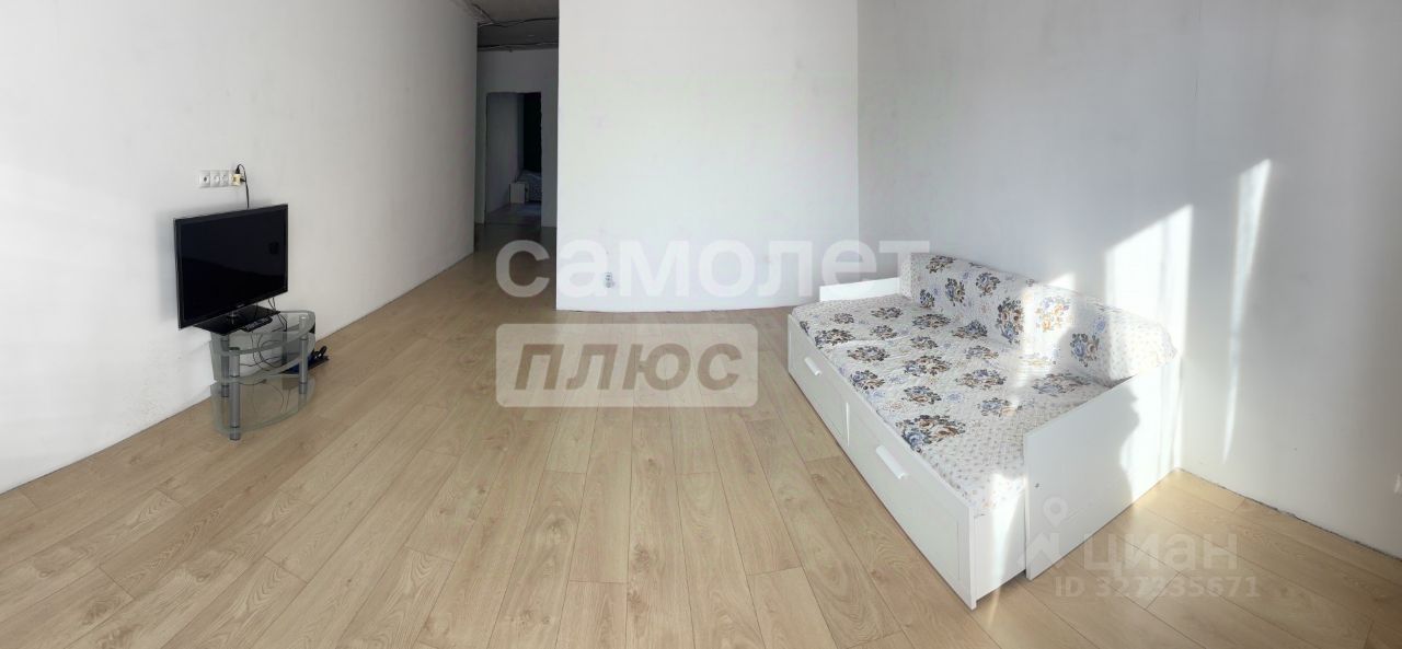 Межкомнатные перегородки установлены, электрика разведена по квартире, стены отштукатурены под покраску, либо под обои, на полу ламинат. Балкон остеклен.