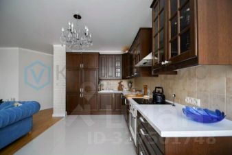 Кухня: гарнитур из массива дерева со встроенной техникой Electrolux (эл. варочная панель, духовой шкаф, 2 холодильника, посудомоечная машина).