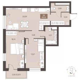 Продаётся 2-комнатная квартира в строящемся доме (Дом 1.1), срок сдачи: II-кв. 2027, общей площадью 68.59 кв.м., на 12 этаже. Новый жилой комплекс "Заря на Завертяева" от Специализированного застройщика "БРИК" расположен по адресу: г. Омск, ул. Завертяева.