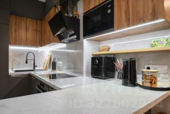 В квартире выполнен дизайнерский ремонт с применением современных строительных технологий и отделочных материалов. Продуманная до мелочей система освещения, 2 кондиционера, водонагреватель. Квартира очень светлая, отделка в нейтральных тонах. На полу керамогранит, тёплый пол, в комнатах ламинат. Новый кухонный гарнитур с каменной столешницей, техника Bosh (морозильная камера, холодильник, посудомоечная машина, стиральная машина, варочная индукционная поверхность, духовой шкаф, вытяжка, свч, измельчитель, фильтр для воды). Разводка отопления по полу, сами переделывали после застройщика. Сан.узел раздельный. Высота потолков 275 см., на этаже располагаются 4-е квартиры. Придомовая территория благоустроена современной детской площадкой, тротуарные дорожки, скамейки для отдыха, а также зона для парковки автомобилей.