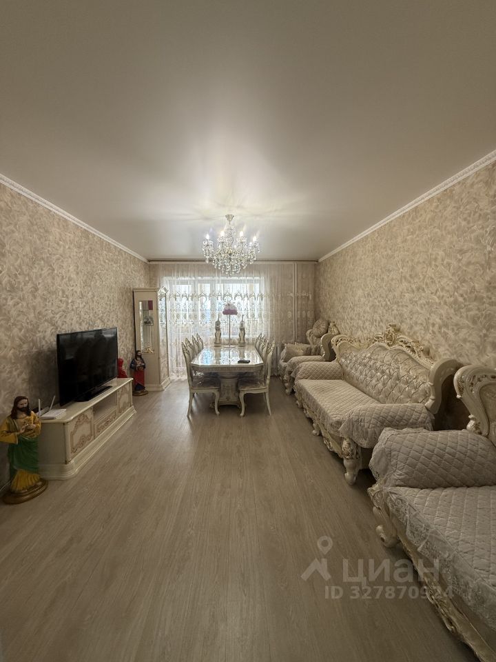 Общая площадь квартиры составляет 97 м², жилая — 65 м², просторная кухня- 15.5м² в кухне и коридоре на полу уложена плитка керамогранит, в комнатах добротный линолеум. Новые межкомнатные двери. Санузел совмещен, отделан кафелем. В квартире остается встроенный кухонный гарнитур и шкаф-купе в коридоре.