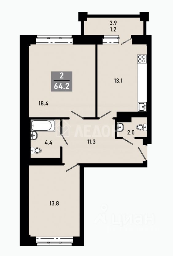 Арт. 131943721 Агентство недвижимости "Ледон" предлагает к приобретению двухкомнатную квартиру с улучшенной и функциональной планировкой в современном ЖК "Гармония".