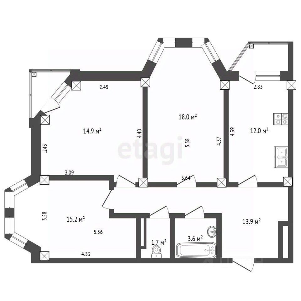Площадь и планировка: 79,3 м2, высота потолков 2.7 м. Раздельные комнаты, большая кухня 12 м2, раздельный санузел с новой сантехникой, 2 балкона застеклены, просторная прихожая. Комфортный 5 этаж.