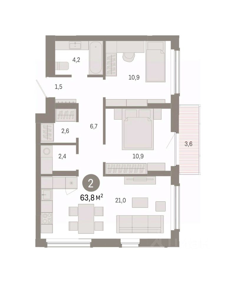 Общая площадь63,8 м²