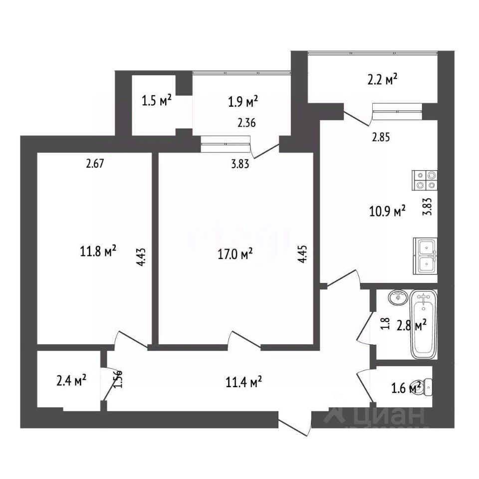Планировка функциональная: раздельный санузел, гардеробная и две просторные лоджии. Отличный вид из окон. Район спокойный, при этом вся инфраструктура — магазины, детские сады, поликлиники, школы — в шаговой доступности. Остановки общественного транспорта рядом, до центра города около 15 минут.
