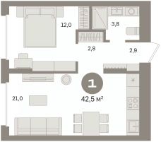 Общая площадь42,53 м²