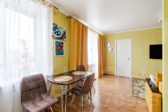 Ремонт выполнен в ярких, но при этом несколько приглушенных тонах, позволяющих комфортно находится в квартире людям любых возрастов.