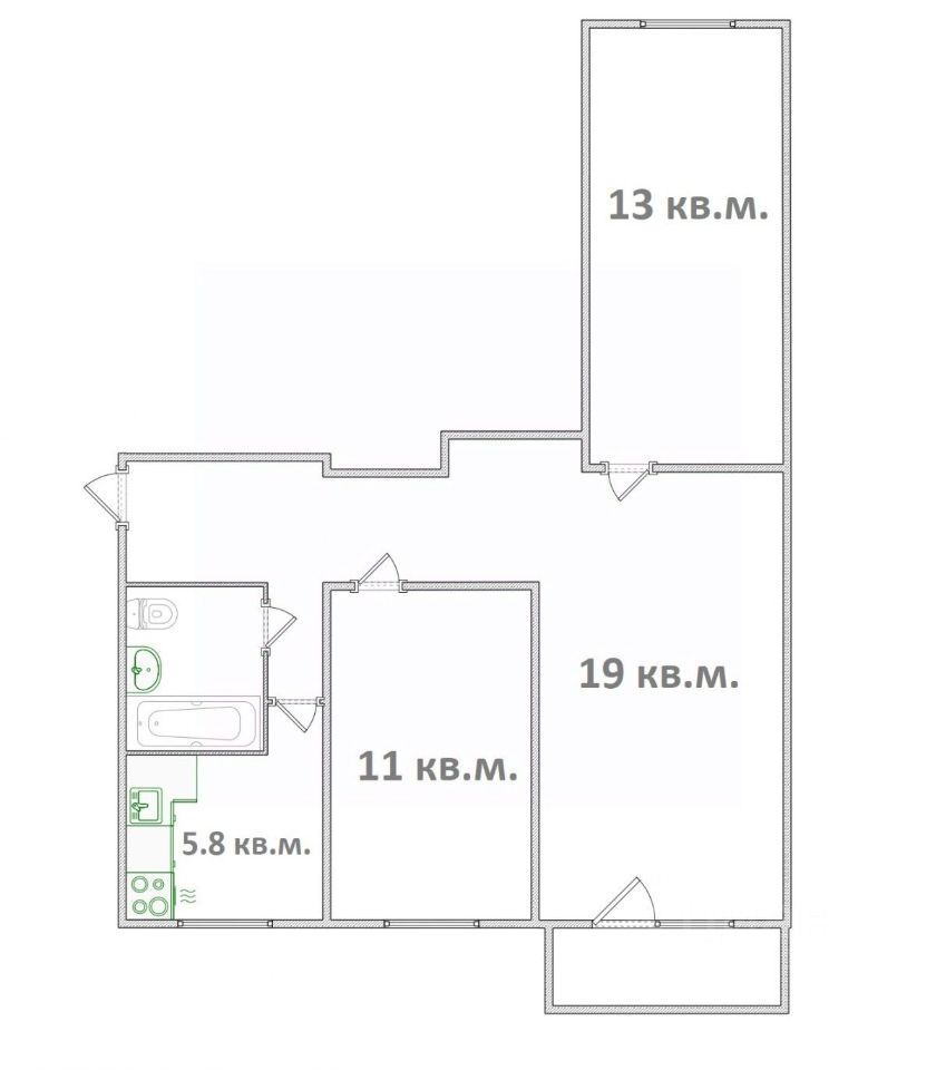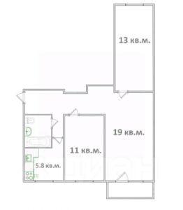 Комнаты: 3 — 19,0 м²; 13,0 м²; 11,0 м².