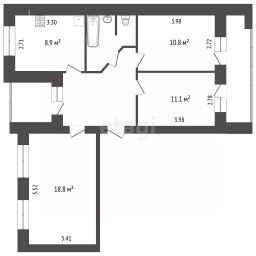 На самом деле квартира просторная и пространство для комфортного проживания в квартире увеличено длинным коридором, не входящим в собственность квартиры, но так как только одна данная квартира находится в этом пролете коридора, то была огорожена и используется собственниками (площадью 6,5-7 м2). В коридоре встроен вместительный 3-х створчатый шкаф-купе с зеркалами в пол для раздевалки и хранения вещей. А также дополнительно плюс к этому коридору имеется тамбур- 2,3 м2 при входе для обуви.