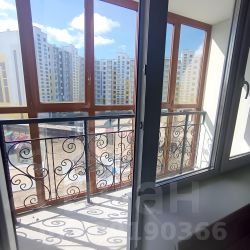 Балкон застеклён окнами ПВХ, установлено фигурное и надёжное ограждение. Выход на балкон из спальни.