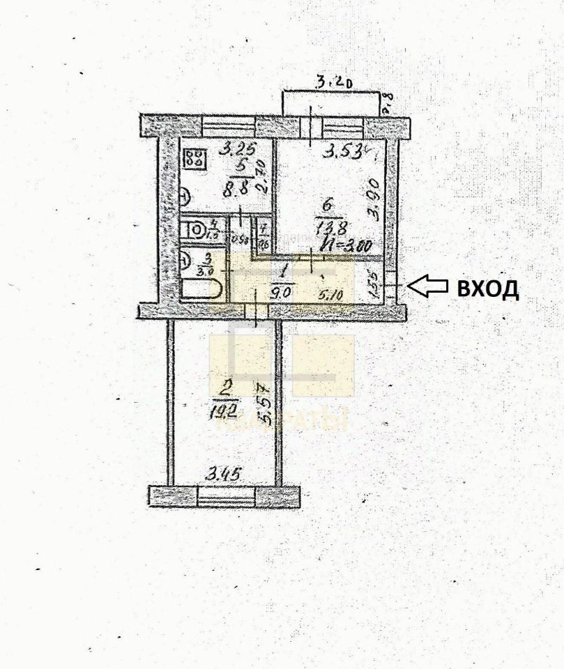 Планировка для гармонии: Две РАЗДЕЛЬНЫЕ комнаты (просторная 19,2 м² и уютная спальня 13,8 м²) — это возможность для каждого иметь свой уголок. А кухня в 9 м² станет сердцем вашего дома, где так приятно собираться за ужином.