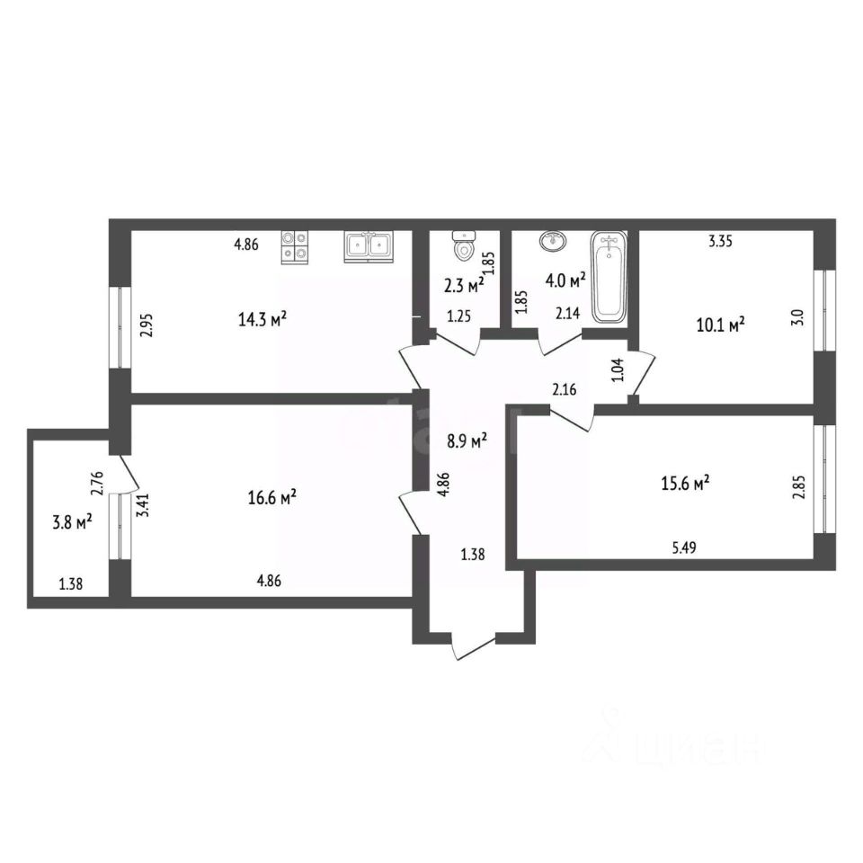 Комнат: 3 изолированные