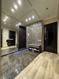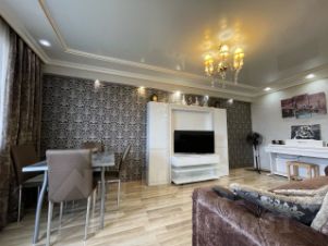 Кухня площадью 6 квадратных метров позволяет удобно разместить всю необходимую мебель и технику. В квартире установлен теплый пол, который создает приятную атмосферу в холодное время года. Санузел совмещенный, выполнен в современном стиле.