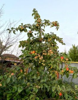 На участке растут и обильно плодоносят деревья и кустарники, яблони колоновидные, груши, смородина, вишня, калина, рябина, жимолость, облепиха, боярышник.
