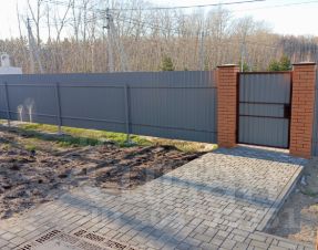 забор из профнастила с кирпичными стильбами с лицевой стороны
