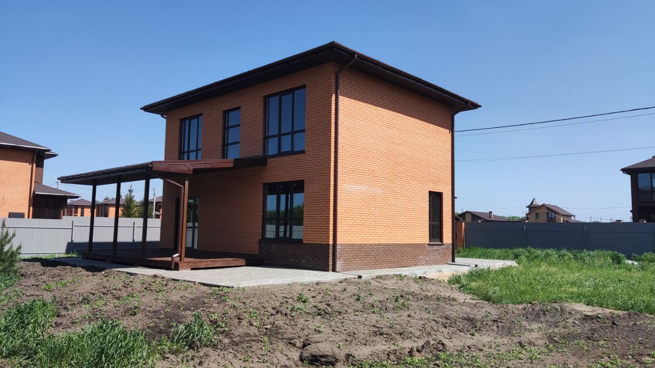 Дом без отделки (сделана стяжка пола на первом этаже под плитку/ламинат). Предусмотрено место под камин. В поселке много магазинов (в шаговой доступности супермаркет "Пятёрочка"), улицы освещаются, интернет и телевидение от дом.ру., дороги чистятся регулярно.