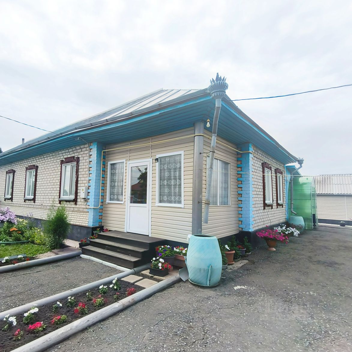 На территории участка расположены: баня, теплица, летная кухня, капитальный кирпичный гараж, курятник, оригинальный колодец, емкость на 10 кубов, сарай, погреб уличный, углярка, многообразие насаждений, деревьев, кустов, цветов, туи, разработанный огород. Территория асфальтирована, частично выложена плитка, огорожена забором.