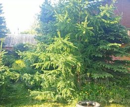 На участке расположена теплица, хозпостройки. Плодовые деревья, хвойные деревья.