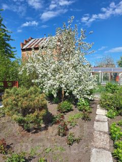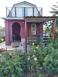 Продается дача в черте города в пяти минутах от остановки общественного транспорта. На земельном участке 6,25 -ть соток в собственности, двухэтажный жилой дом площадью 46 кв.м. На 1-ом этаже дома обустроены гостиная, кухня, баня и предбанник. На 2-ом этаже одна жилая комната с балконом обшитая внутри вагонкой. На каждом этаже есть веранда. Большое чердачное помещение под крышей дома используется для разного рода хранения. Дом построен из кирпича, фронтоны облицованы сайдингом, установлен на ленточном фундаменте. По периметру дома уложена отмостка и дорожки из мрамора и гранита. Помимо основного дома на территории оборудована беседка с навесом, стоянка для машины, детская площадка с качелей и песочницей, туалет, два подсобных помещения для хранения инвентаря и мангальная зона, две теплицы заводского изготовления. Просторный, ухоженный участок правильной формы, новый забор, калитка и ворота из профнастила. Дорожки выложены железобетонными плитами. Участок с растущими красивыми деревьями (горная сосна, голубая ель, туи, можевельники), цветами, фруктово-ягодным садом и двумя сортами винограда. На территории дома летний пластиковый водопровод, вдоль забора дровяник для мангала. В зимний период дорога чистится для проезда. Хорошая транспортная доступность. Два маршрута общественного транспорта: 350, 72. Городская прописка. Вблизи расположены детский сад, школа, продовольственный магазин. Документы готовы, сделано межевание. Один собственник. В настоящее время заключаются договора на присоединение к центральному водопроводу Омскводоканала и планируется газификация в 2027 году. По просмотру объекта и всем интересующим вопросам звоните по телефону.