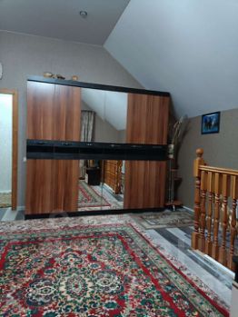 На втором этаже спальня, душевая и туалет совмещены, проходная комнатка, там стоит диванчик, система камер видеонаблюдения с монитор и выход на террасу с неё есть лестница в низ в огород к теплице. Под террасой есть большая летняя комната хоз. Назначения, рядом кладовая. Так же имеется беседка с качелей и большим столом и лавками. Большая баня и Большой предбанник с большим столом, а так же купель. За баней находится сарайчик. Есть гараж с погребом для хранения заготовок на зиму. Во дворе на против веранды котельная, где находится печка и газовый котёл. В огороде есть кустарники с малиной, смородиной Красной и чёрной, вишня, яблони.