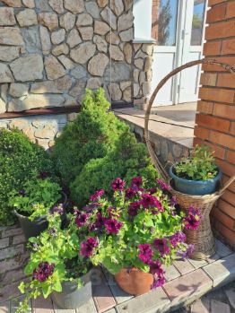 На внушительном участке расположены хорошие хоз. постройки, гараж, банька, теплицы, сад с множеством сортовых и редких растений! Хвойные растеня-ели голубые-Мистер Блю, Хупси, Глаука Глобоза, ,Биалобок, Супер Блю. Туи- Брабант, Смарагд, Аурея Нана, Даника. Можжевельники-Скайрокет, Блю Эрроу, Скальный Можжевельник горизонтальный-Казацкий, Андорра компакт, Блю карает, Грин карпет Из декоративных растений:Черемуха Шуберта, Форзиция промежуточная, Дерен Элегантосимо, Чубушник Белая Да а, сирень 7 сортов, Бирючина, Лох Золотистый, Яблоня Недзвецкого, Бересклет, Липа, Орех Маньчжурский, Сумах, Каштан, Калина Бульдонеж, спиреи разных сортов, снежноягодник, Вероникааструм, Каприфоль, Княжики, Клеиатисв, Гортензии, Розы, сосна горная мугус, барбариса. Плодовые деревья:яблони, вишня, груши , Малина , ежевика, смородина, жимолость, шифердия, клубника, тайбери. Ива Матсудана, ель Инверса, микробиота.