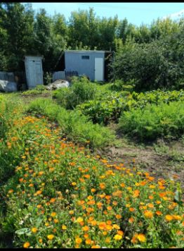 Кирпичный дом 6 на 4 м, проведен свет в дом, пол деревянный новый, утеплённый, окна пластиковые. На территории участка: туалет, новый сарай, железный бак под воду 3 куба, колодец. Посадки: пять яблонь, жимолость, клубника, вишня, слива, крыжовник, смородина, малина, кедр, черноплодная рябина, две груши трехлетки, облепиха, ирга, липа, боярышник и цветы.